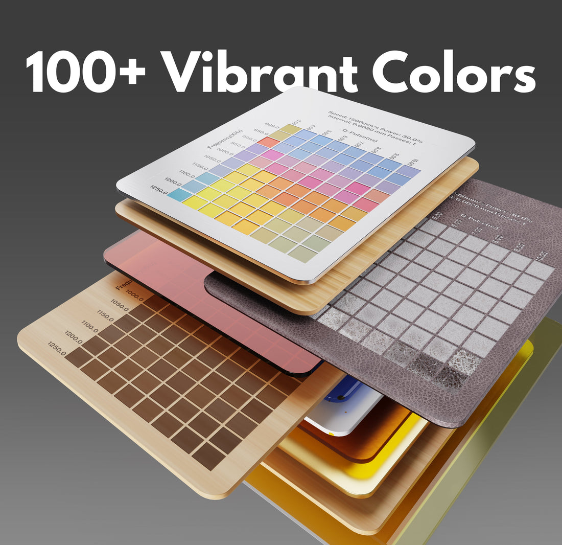 Color Magic (30W MOPA): The advanced 30W MOPA fiber laser technology—previously reserved for large industrial machines—enables the Dual 2 to achieve fine color marking on various metals and plastics, moving beyond simple black and white. It unlocks 100+ vibrant engraving colors.