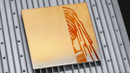 The 30W laser etch precision and depth into brass, creating embossing that you can both see and feel.