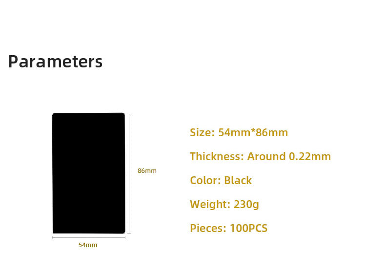 Create personalized business cards with EM-Smart's blank aluminum name cards. Each pack contains 100 cards (85*54mm, 0.22mm thickness), perfect for laser engraving.